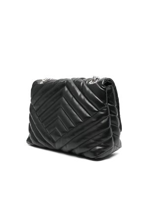 leather chevron quilting foldover top with magnetic fastening chain-link shoulder strap partitioned compartment logo-print lining internal zip-fastening pocket internal logo patch silver-tone hardware Size: Depth 10cm, Height 18cm, Width 26cm.