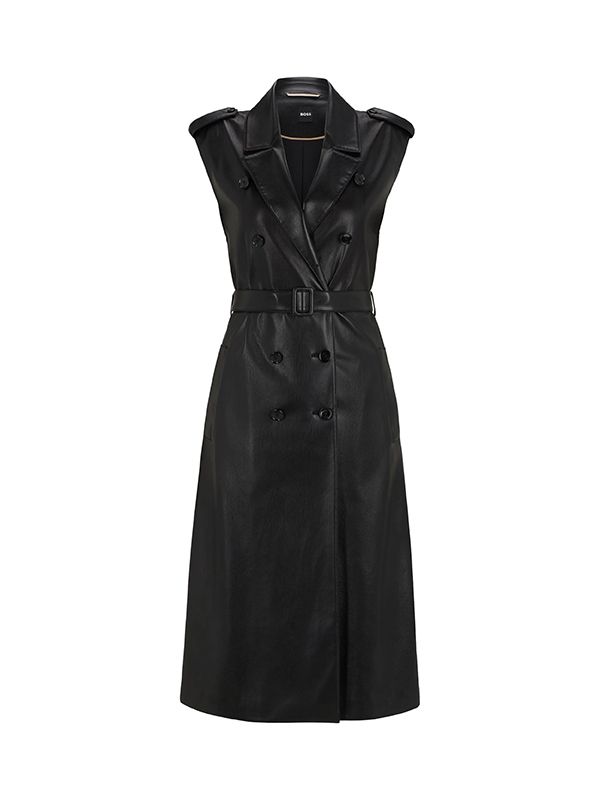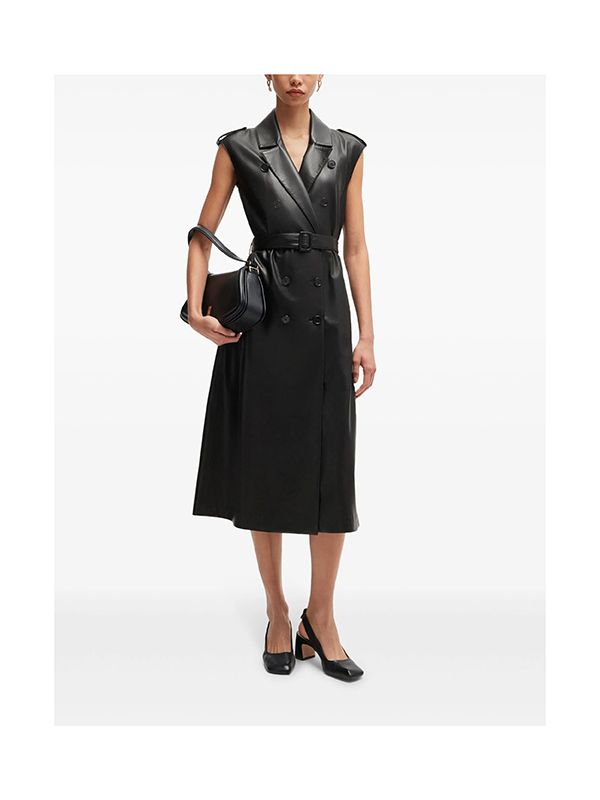 Boss Faux-Leather Double-Breasted Midi Dress