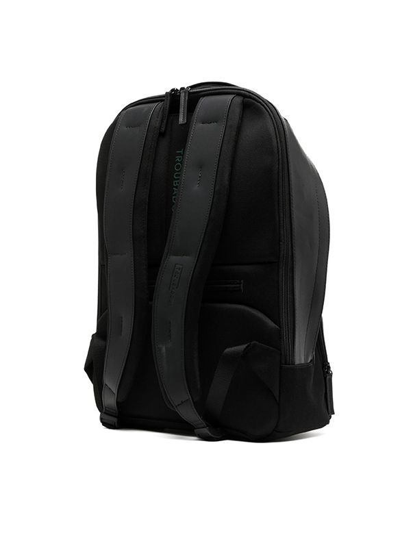 Brand: Troubadour Colour: black Gender: Men Material: Fabric recycled polyester top zip fastening front zip-fastening compartment single flat top handle adjustable shoulder Straps Size: Depth 17cm, Height 42cm, Width 31cm.