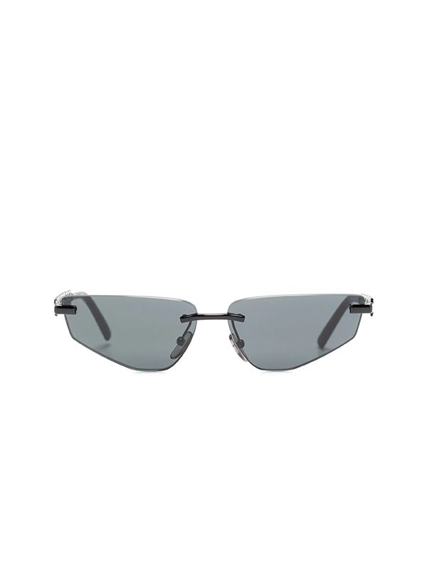 geometric frame tinted lenses logo lettering nose pads straight arms curved tips Size: Arm Length 14cm, Bridge width 1.3cm, Lens Diameter 5.8cm,Total width 13cm.