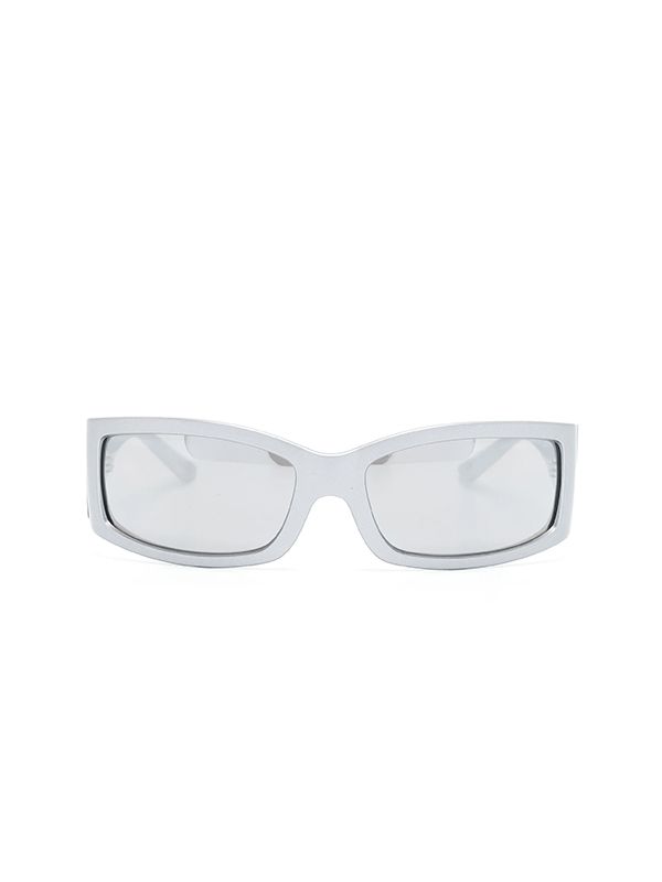light grey acetate rectangle frame tinted lenses UV-protective lenses logo-embossed arm oversize arms curved tips curved tips Size: Arm Length 12.5cm, Bridge width 1.7cm, Lens Diameter 6.1cm,Total width 13.5cm.