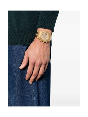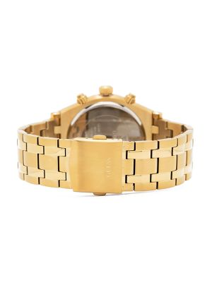 47mm, round face, baton dial, baton hands, date indication, chronograph counters, two chronograph pushers, screw-down crown, adjustable link bracelet, folding clasp, quartz movement.