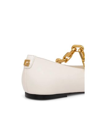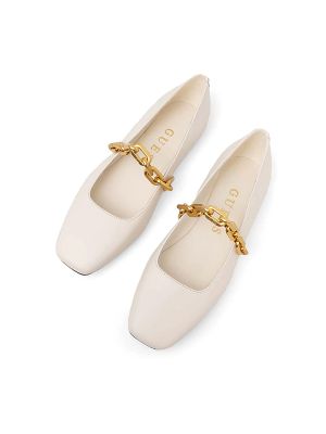Slip-on style, flat rubber sole, chain-link detailing, square toe.