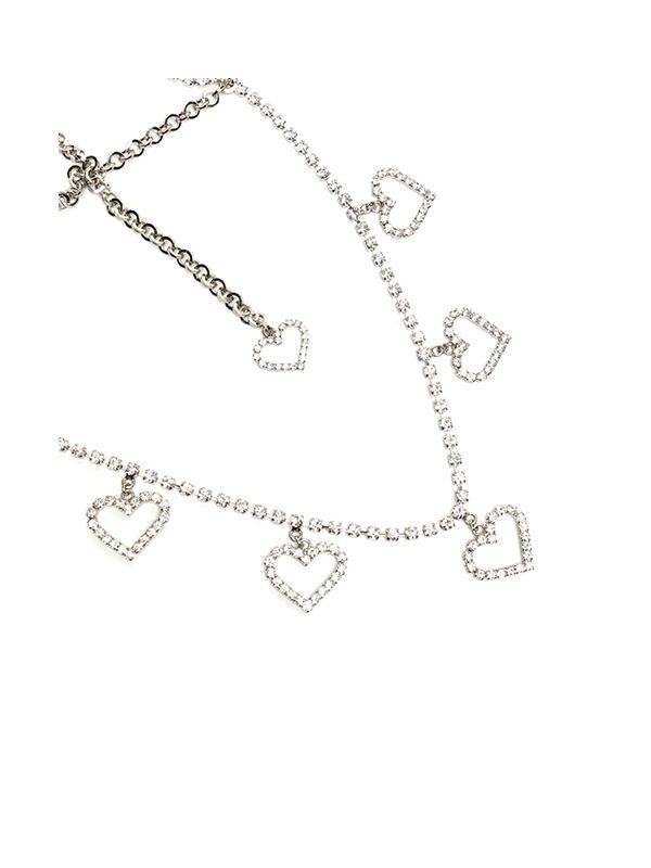 Alessandra Rich's penchant for bold embellishments is shown by this silvertone necklace. It is adorned with glistening crystals and eyecatching heart pendants for added texture and depth.