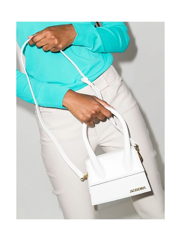 Gold-tone plaque at the front, Le Chiquot Moyen boasts a bright white colour and can be worn crossbody style, hanging from the shoulder or handheld thanks to its detachable strap.
