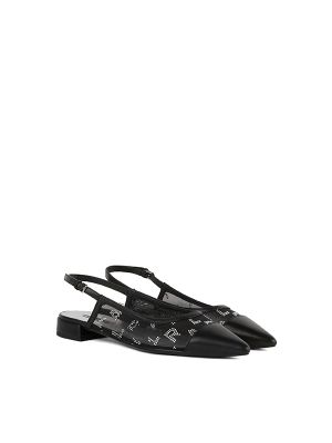 Mesh design, buckle-fastening ankle strap, leather trim, crystal logo embellishment, tonal toecap, pointed toe, branded leather insole, leather sole.