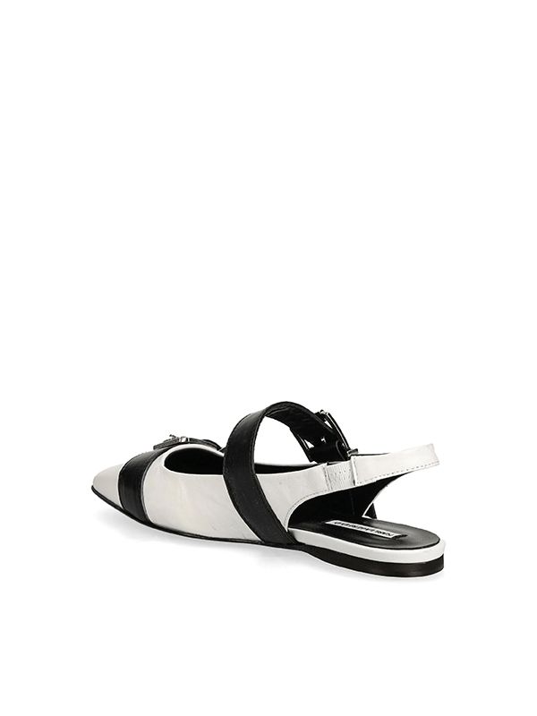 Smooth grain, elasticated slingback strap, decorative buckle detailing, square toe, branded leather insole, flat rubber sole.