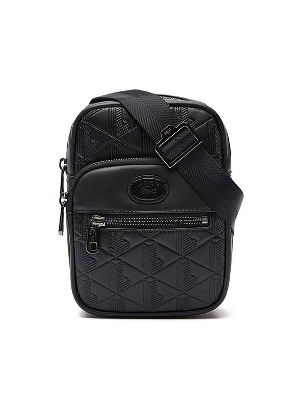 Dimensions: L 5.1 × W 7.2 × D 2.7" / L 13 × H 18.5 × D 7 cm Adjustable strap: 75 cm - 140 cm / 29.5" - 55" 2 exterior zip pockets, 1 interior mesh pocket Enameled plaque with crocodile logo.
