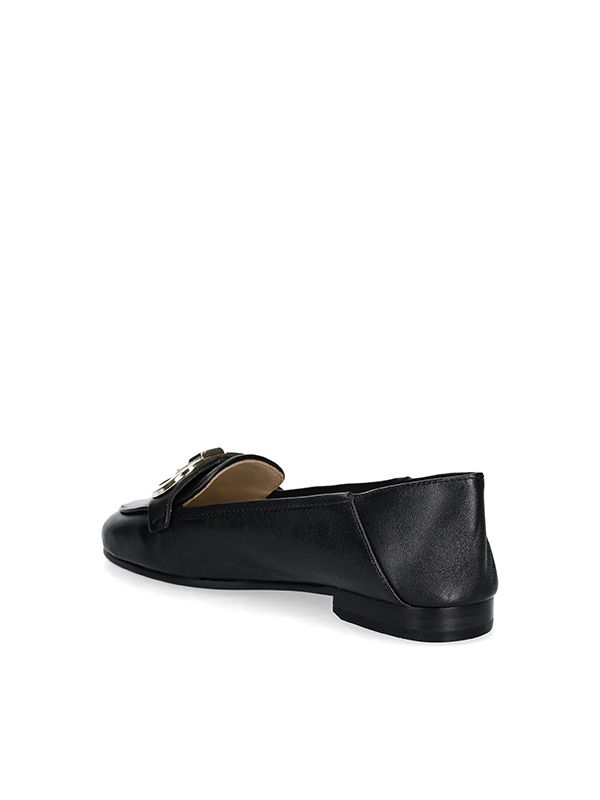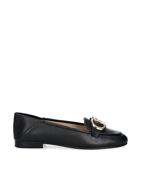 Slip-on style, almond toe, gold-tone logo plaque, branded leather insole.