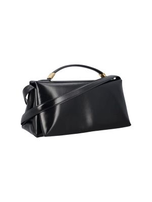 Black Marni smooth leather hand bag for woman - One handle - One removable and adjustable shoulder strap - One main compartment with flap and slot fastening - Rear golden logo - Three internal pockets Composition: 100% Cow Leather Lining, 55% Cotton, 45% Polyurethane Padding:, 100% Polyester Details:, 100% Brass Made in Italy Size and fit: W HEIGHT= 16 cm LENGTH= 32 cm DEPTH= 11 cm HANDLE DROP= 5 cm x H x D cm SHOULDER STRAP DROP= 50 cm