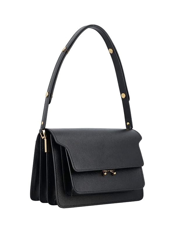 Leather Trunk Medium Bag By Marni. Featuring: Shoulder And Cross-body Carry Shoulder Strap With Extension Back Pocket And Inside Pocket Internal Compartments: Two With Zip Gold-tone Metal Fast Height: 16cm Width: 23cm Depth: 12,5cm Composition: 100% calf leather Made in Italy Size and fit: Height: 16cm Width: 23cm Depth: 12.5cm.