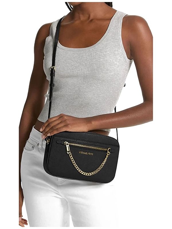 Crafted from Saffiano leather for luxe appeal, our Jet Set crossbody bag is designed in a sleek, compact silhouette. A polished chain-link zipper pull delivers standout style, while the pocketed interior is perfectly sized for a day’s worth of essentials.