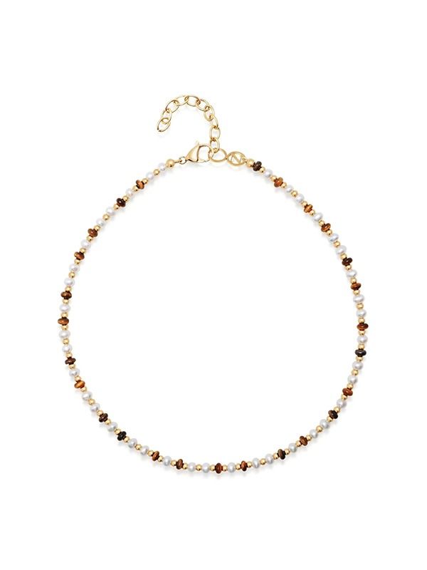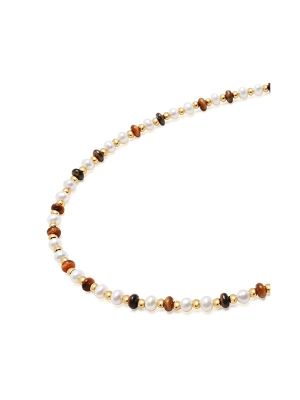 Marerial: Freshwater Pearl, Yellow Gold Plated Stainless Steel, Tiger eye, glass