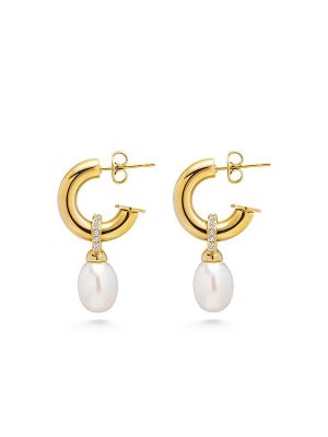 Marerial: Cubic Zirconia, Freshwater Pearl, Gold Plated Steel