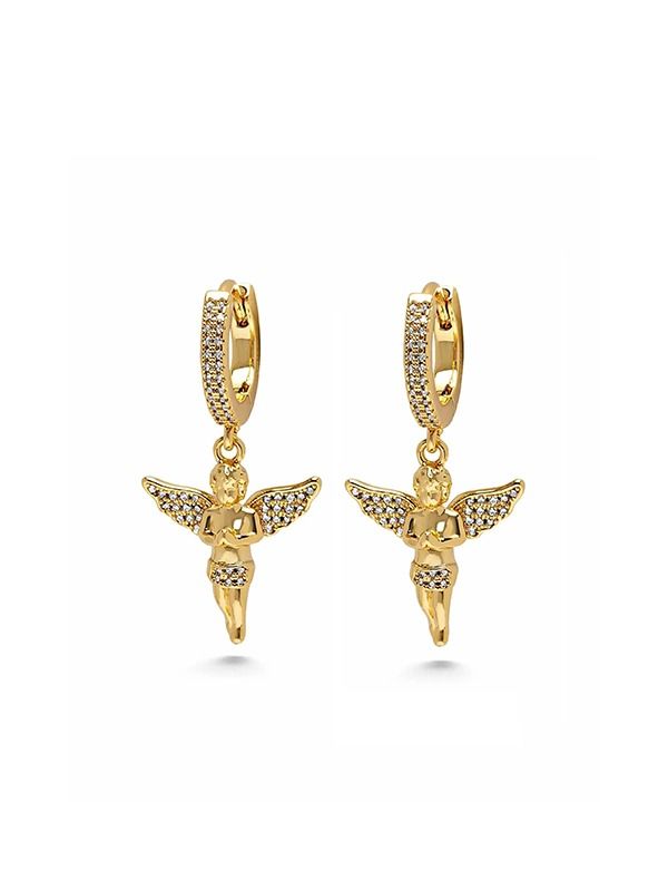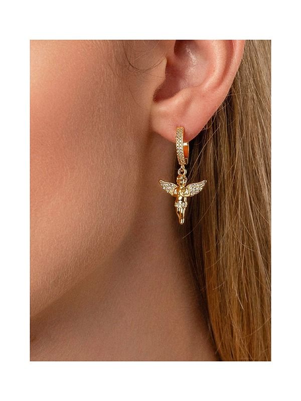 Nialaya Stainless Steel Angel Huggie Earrings