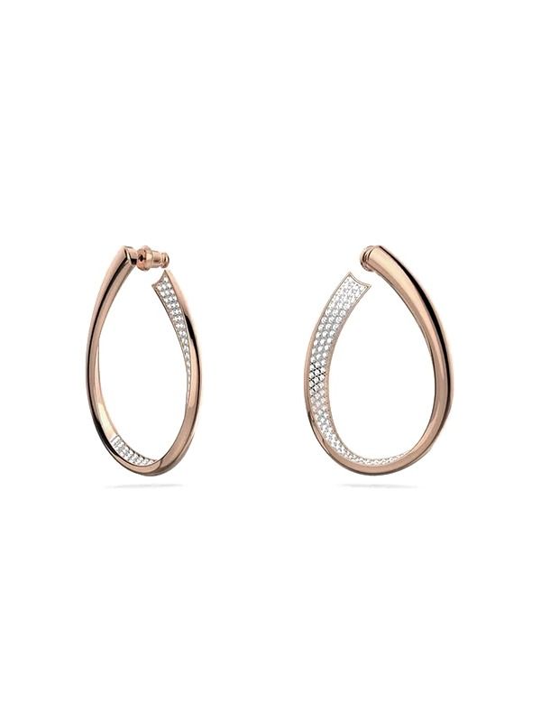 These mesmerising hoop earrings are as adaptable as they are eye-catching. They have a unique ribbon motif and are decorated with white crystal pavé and finished with classic rose gold-tone plating. They adjust to the situation, whether it's day or night, dressed up or down.