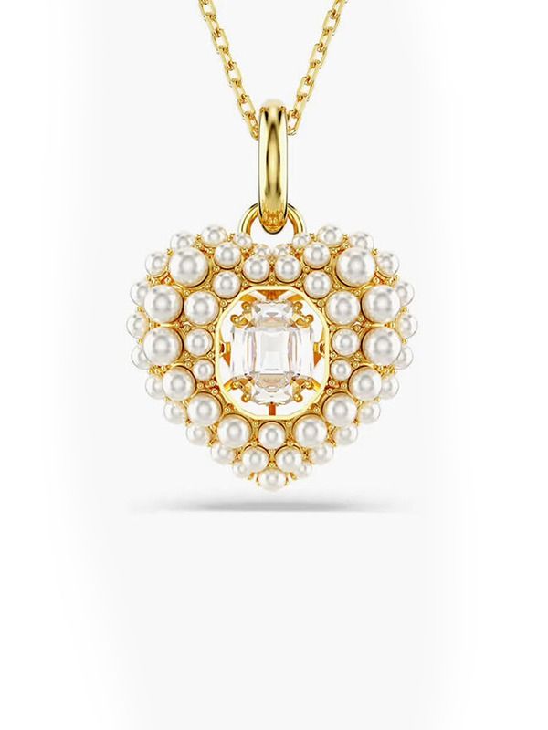 Swarovski necklace from the Hyperbola collection. Finish in gold tone with white crystals. Hyperbola Pendant, Heart, White, Gold-tone plated.