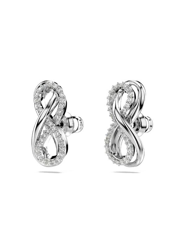 Swarovski earrings from the Hyperbola collection. Rhodium plating with white crystals. Hyperbola Stud Earrings, Infinity, White, Rhodium plated.