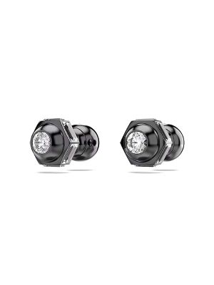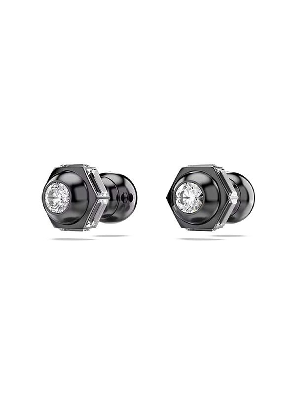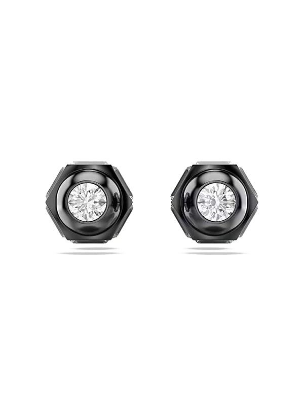 These bold Numina studs are incredibly eye-catching, combining dazzling sparkle with metallic engineering. Each piece is plated with black ruthenium and features a single Swarovski cubic zirconia set in a hexagonal setting.