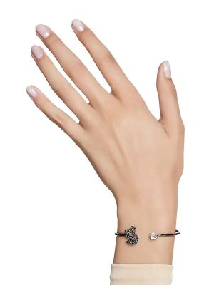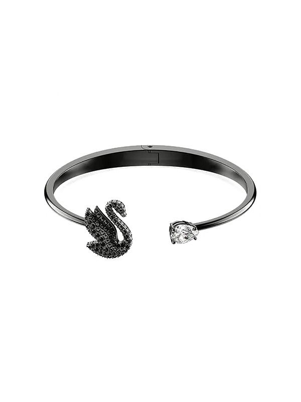 Swarovski bracelet from the Swan collection with black crystals. Swarovski Iconic Swan bangle, Swan, Black, Ruthenium plated.