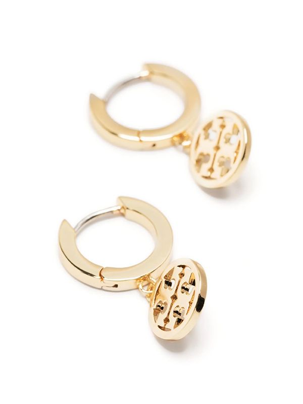 gold-tone brass signature Double T motif small hoop design hinge-pin fastening for pierced ears These earrings come as a pair.
