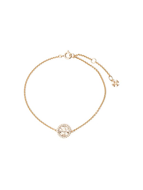 Coming from Tory Burch's Miller collection, this delicate gold-tone bracelet is characterised by the cut-out Double T logo. In this case, the iconic motif appears with shimmering crystal embellishments all around.