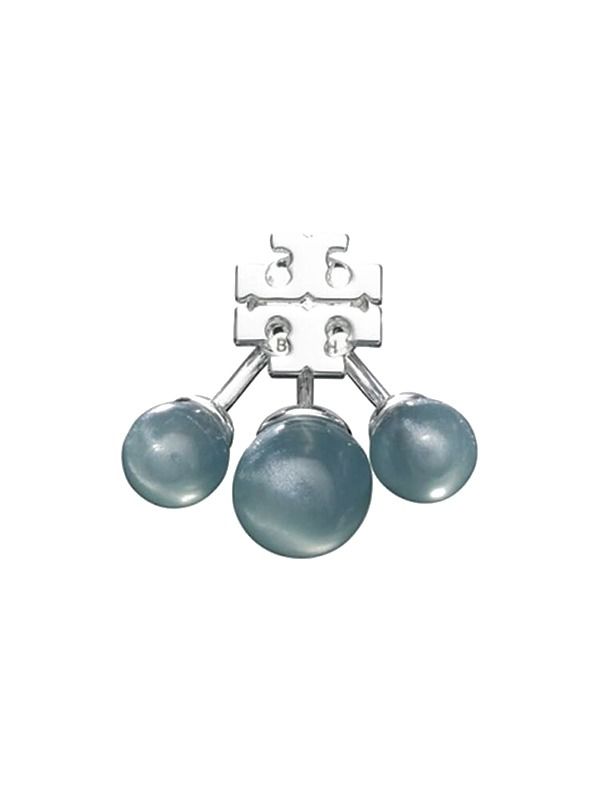 The Resin Front-Back Earring is a two-piece design a Double T stud and triple-pearl jacket that looks like one piece when worn. A unique finish to any look.