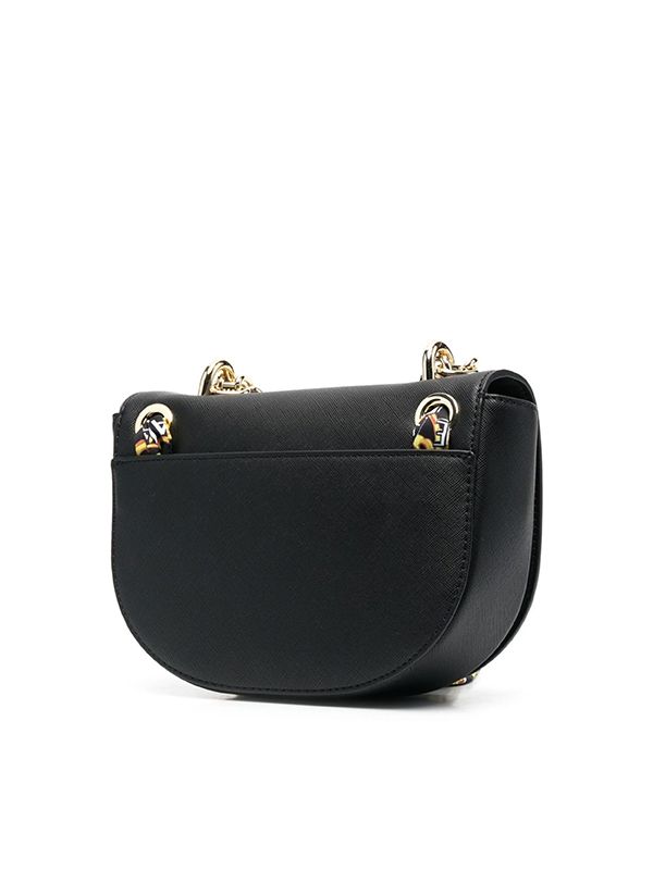 Imagined in black, this compact crossbody bag is detailed with a gold-tone logo plaque on the front and a baroque-print scarf detail, reflecting Versace Jeans Couture's penchant for bold branding.